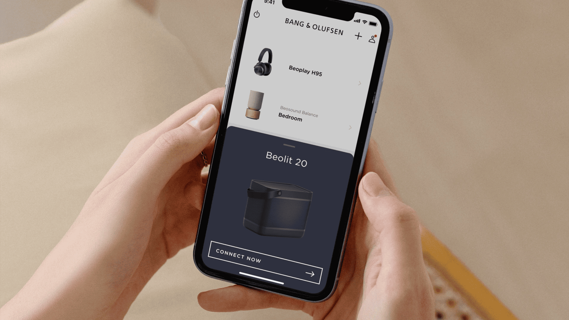 Seriously powerful sound done simple: this is what Beolit 20 is all about. Switch it on, find it in the B&O app and start playing your favourite music. No extra cables, no complicated set up.