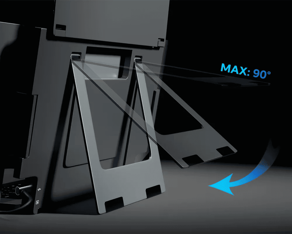 Ensure a stable and secure setup with the V2Com W3’s built-in adjustable kickstand. Designed to support the additional weight of the quad-screen configuration, it features a 90° tilt range to provide the perfect tilt and maximum structural balance. This robust support system protects your laptop hinges while maintaining a sturdy, wobble-free workstation on any flat surface.