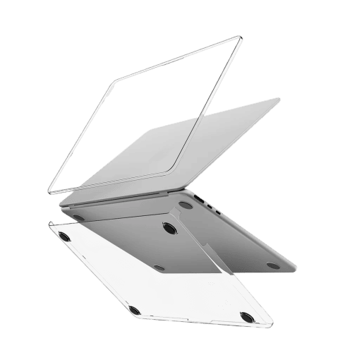 An ultra-slim, snap-on case featuring a high-gloss, crystal-clear finish and a precision fit that enhances, not hides, your device. Minimal in design, refined in feel for everyday ease. Comes with a matching keyboard protector and webcam cover.