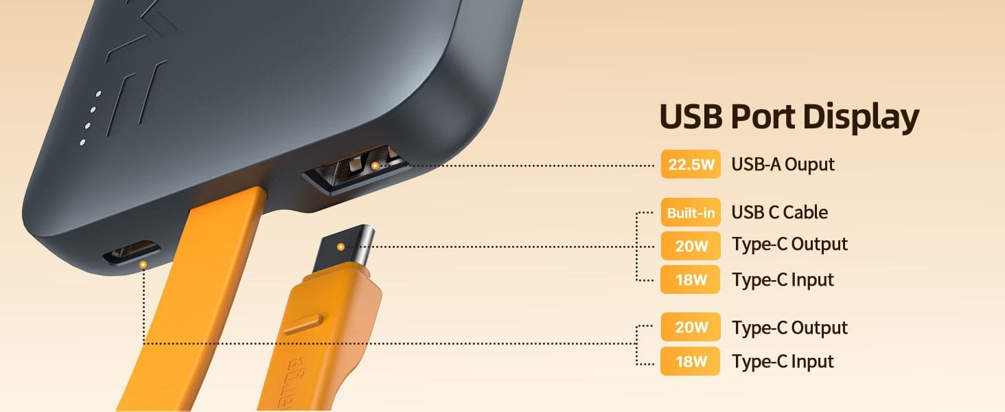 Designed with versatility in mind, our power bank is compatible with a wide range of devices. The built-in cable supports both USB-C and Lightning connectors, catering to both Android and iOS devices. Additionally, it includes a USB-A port for charging other gadgets, making it a universal charging solution.