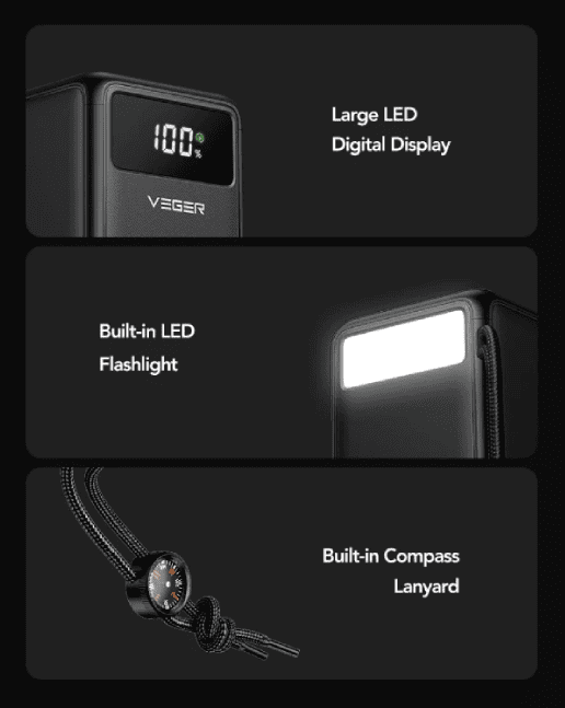The large LED digital display clearly shows the remaining power. And the flashlight supports 3 modes (Low/High/SOS), helping you overcome dark places and emergency situations.