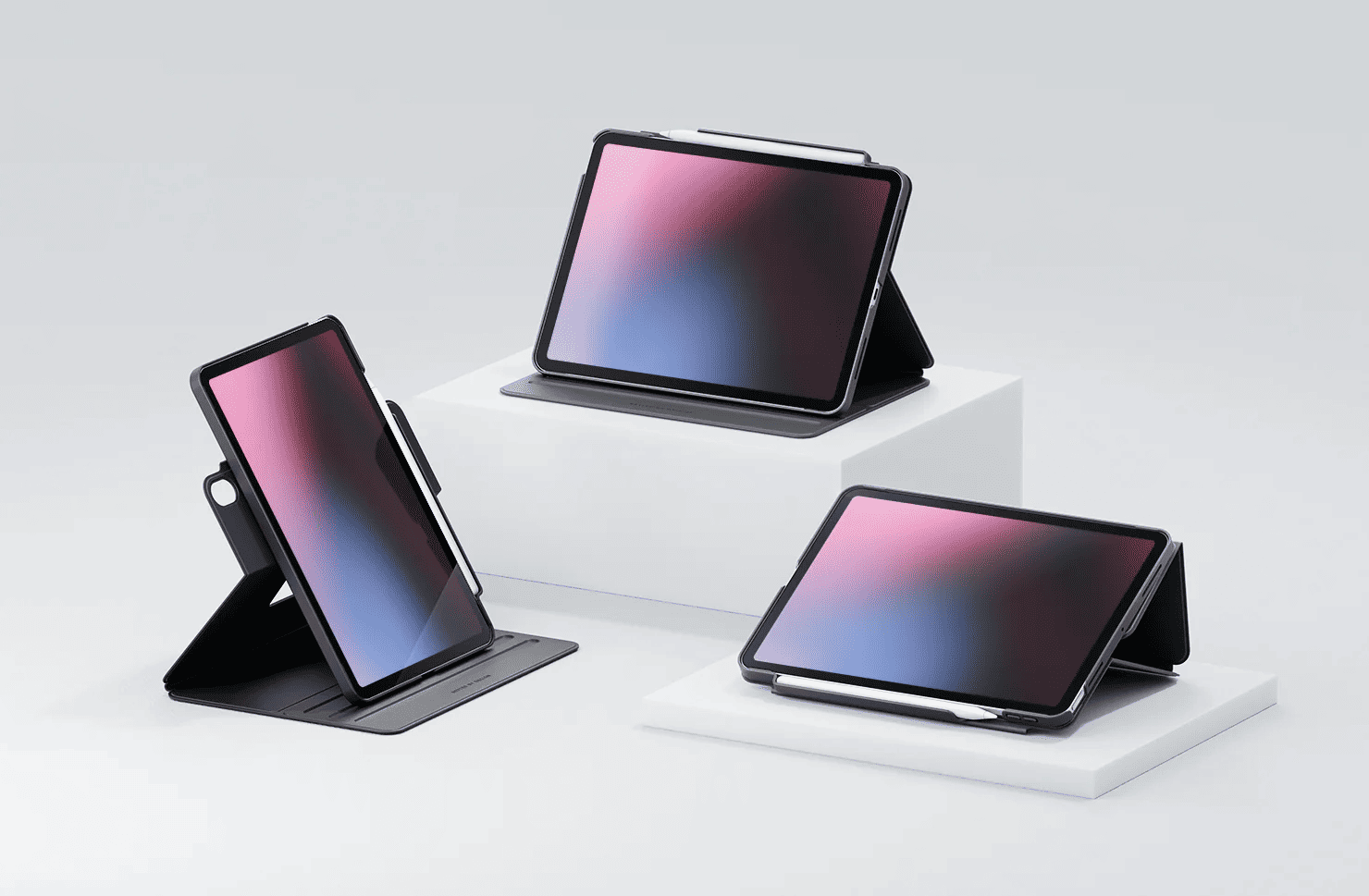 • Protective detachable case and with integrated foldable stand • Magnetic disc for versatile 360º rotation for multiple viewing orientations • SnapMount magnetic base supports up to 2kg • Anti-slip grooves to rest iPad at varying angles • Built-in Apple Pencil storage and charging slot