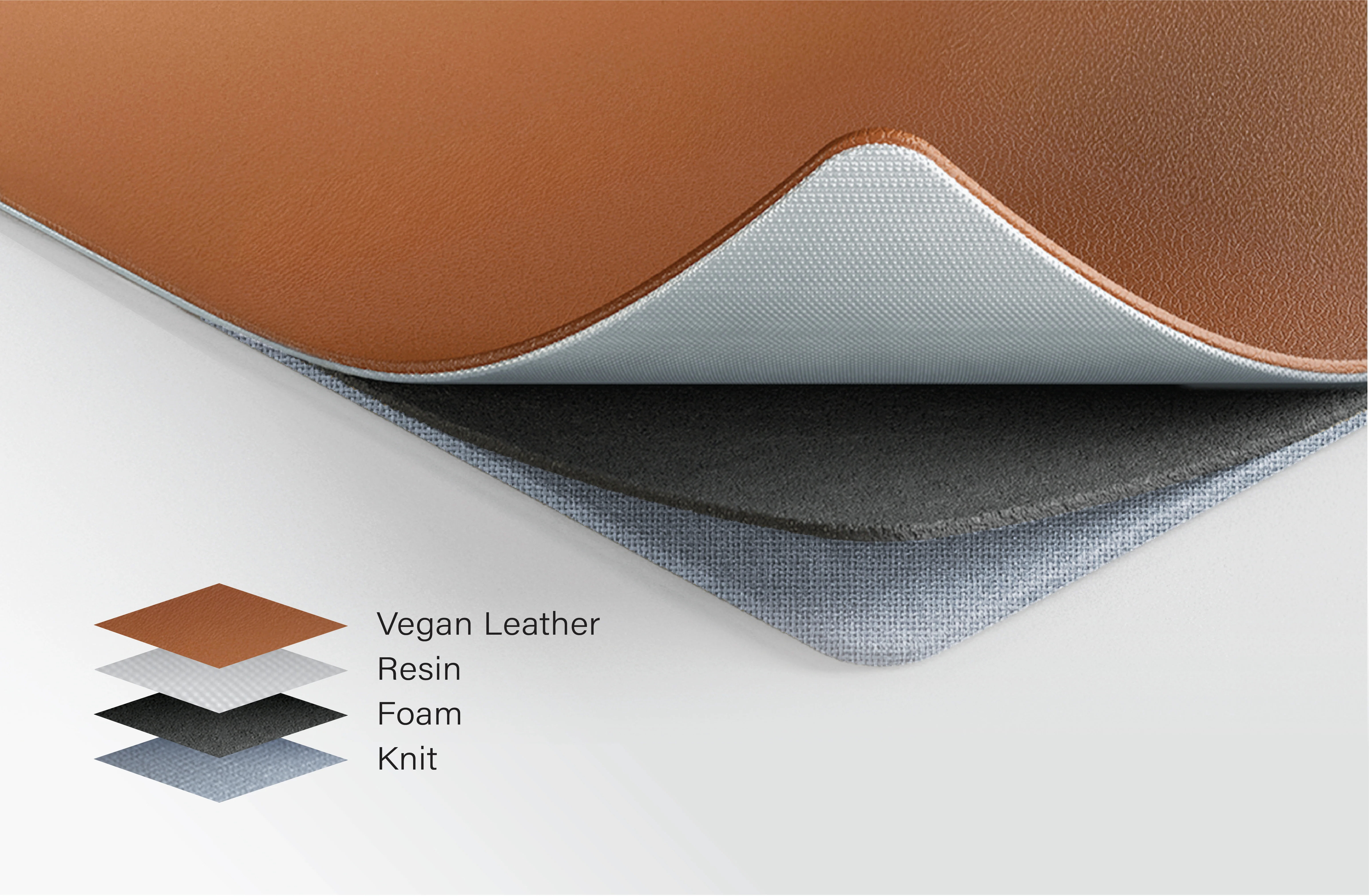 Knit, foam, resin, and vegan leather combine to deliver impact absorption and structural stability in a slim, durable profile.