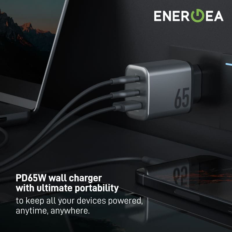 12 MONTHS OFFICIAL INDONESIA WARRANTY The latest generation of AmpCharge charger adapter from ENERGEA. This time a mini charger adapter with GaN (Gallium Nitrite) technology is equipped with 3 USBs that support Power Delivery and Quick Charge 3.0 up to 65W. Suitable for those of you who have sophisticated smartphones and travel hobbies, the relatively small size of the charger makes this charger can be used anytime and anywhere. Feature: 3X FASTER CHARGING TIME Equipped with 3 USB ports, namely USB-C PD 65W and USB-A Quick Charge 3.0 30W according to standard charging for all devices. 50% SMALLER IN SIZE The chip material is made of GaN (Gallium Nitrite) so this charger adapter has a size 50% smaller than the 65W charger in general. LESSER HEAT, HIGHER EFFICIENCY With GaNSmart technology that can minimize excessive heat when charging your smartphone at maximum power. SAFE & RELIABLE Standard safety features such as overcurrent, overvoltage, and overheating to keep your smartphone safe. UNIVERSAL COMPATIBILITY Works comfortably with various mobile or tablet devices.