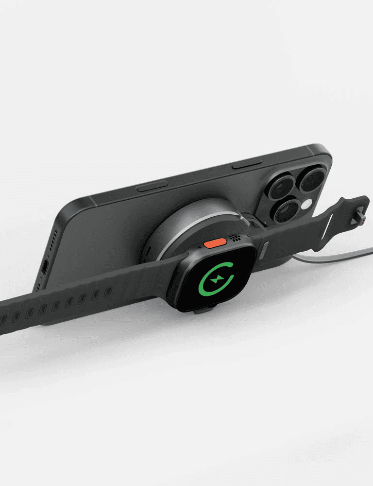 A 2-in-1 wireless charger combining convenience and portability, allowing users to charge both phone and Apple Watch simultaneously. It features a brushed metallic body, dual wireless charging pads, a built-in retractable cable and an integrated kickstand. MagDuo Arc is the perfect companion for digital nomads constantly on the move.