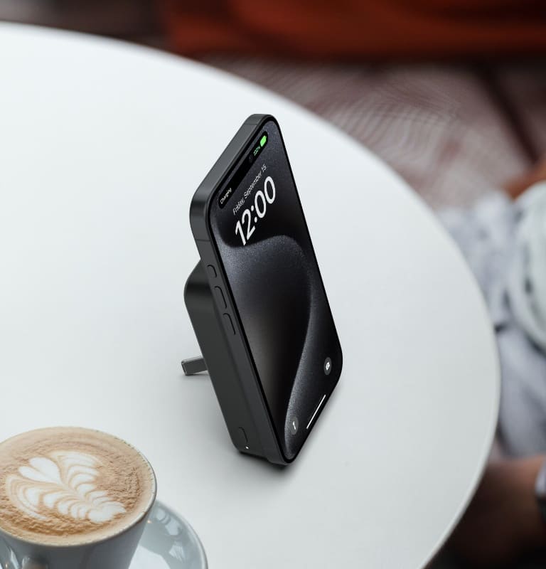 Whether you're gaming, streaming or scrolling, our magnetic power bank holds your device at the perfect angle for viewing without a clip or mount to cover any part of your screen. A built-in kickstand allows you to view your screen while you continue to surf the web or take calls.