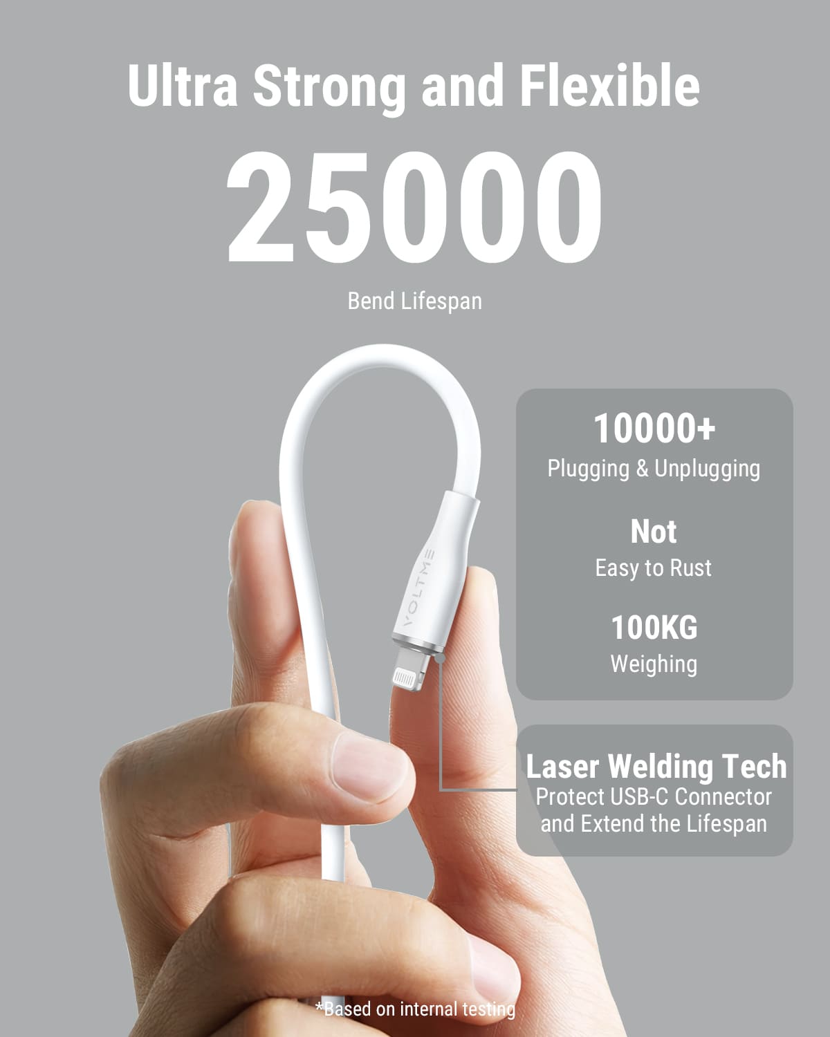 Stop replacing frayed cables! This cable is Ultra Strong and Flexible, offering an exceptional 25,000 Bend Lifespan. Its durability is further proven by passing a 100KG Weighing test and enduring 10,000+ Plugging & Unplugging cycles. Plus, Laser Welding Tech protects the connector, ensuring maximum longevity.