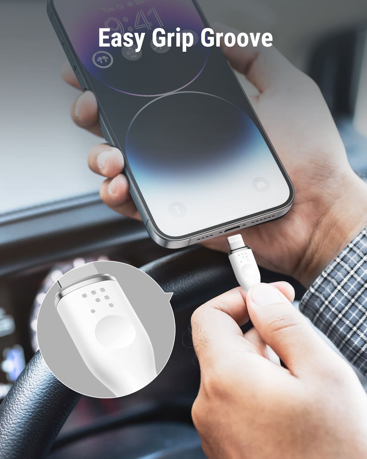 Say goodbye to fumbling with smooth, tiny connectors. The Easy Grip Groove feature on the VOLTME PowerLink cable is an ergonomic design that ensures a secure and comfortable hold, making it effortless to plug in or unplug your device, even with one hand while driving.