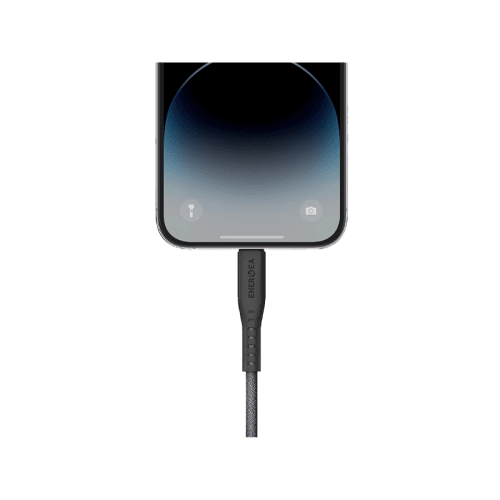 The Energea Flow 480Mbps USB-C to Lightning Display Cable 1.5M - Black is a durable and efficient cable designed for both fast data transfer and reliable display connectivity. With a data transfer rate of up to 480Mbps and a length of 1.5 meters, it offers convenience and performance, all in a sleek black design.