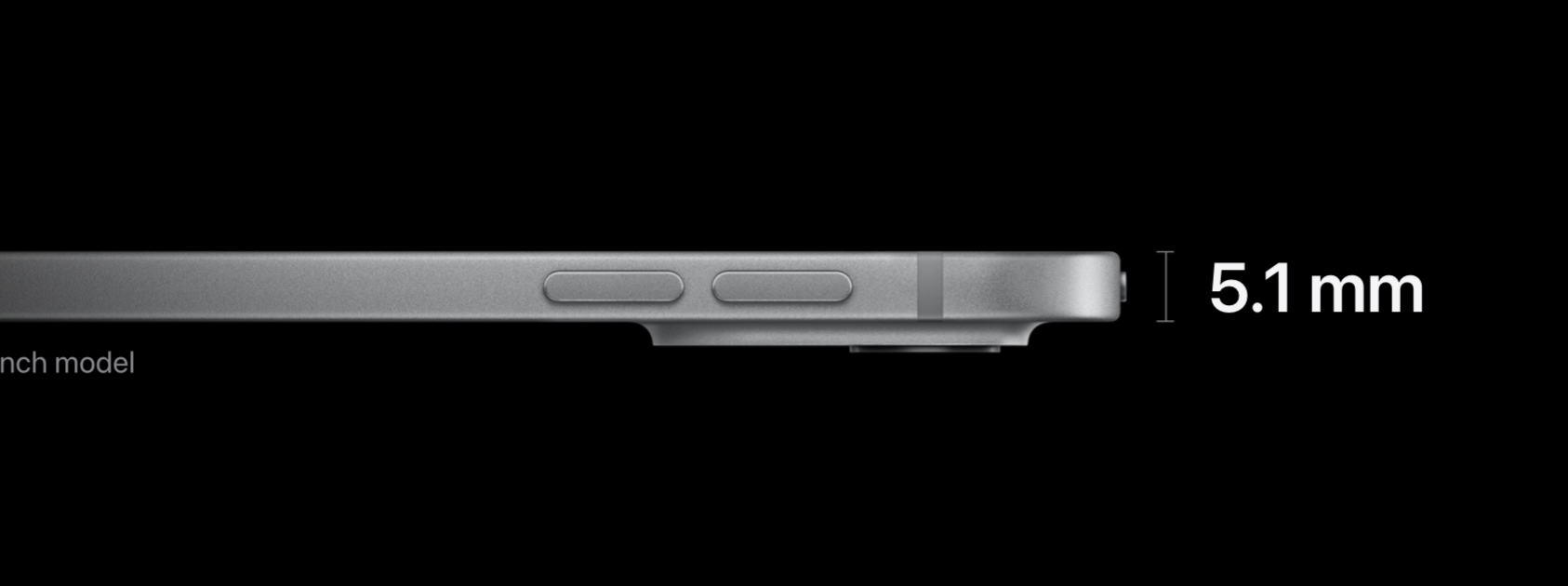 Ultra Retina XDR display Tandem OLED3 2420-by-1668-pixel resolution at 264 ppi ProMotion technology with adaptive refresh rates from 10Hz to 120Hz Wide color (P3) True Tone Fingerprint-resistant oleophobic coating Fully laminated Antireflective coating Nano-texture display glass option on 1TB and 2TB models SDR brightness: 1000 nits max XDR brightness: 1000 nits max full screen, 1600 nits peak (HDR content only) 1 nit minimum brightness 2,000,000:1 contrast ratio Supports Apple Pencil Pro Supports Apple Pencil (USB‑C) Apple Pencil hover